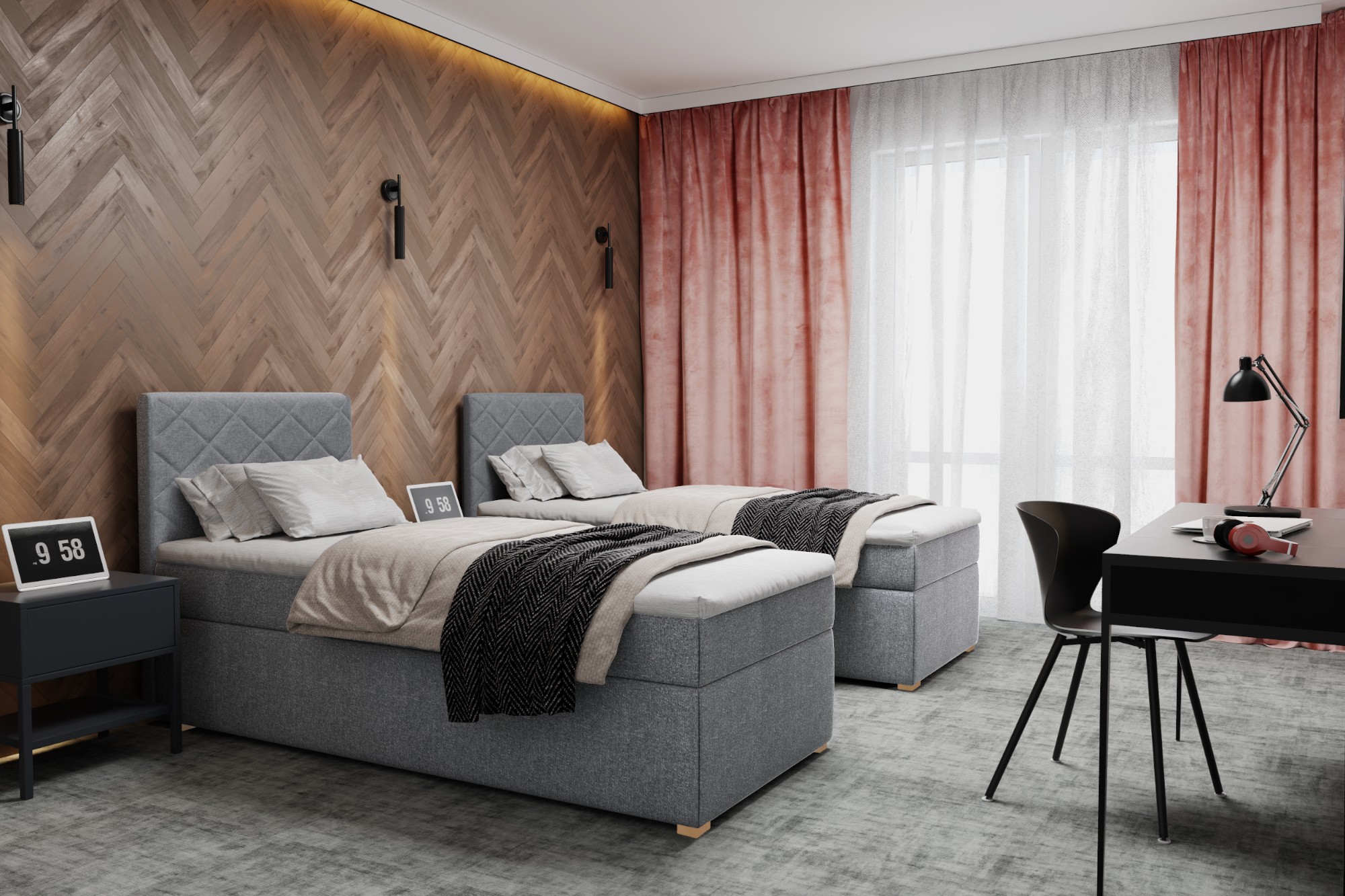 Łóżko hotelowe z ozdobnym wysokim wezgłowiem