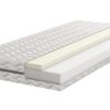 1. PIANKA ecoPUR (7 cm) gęsta, najnowszej generacji, charakteryzująca się wysoką odpornością na odkształcenia. Dzięki niej materac jest odpowiednio elastyczny i zapewnia prawidłową amortyzację sylwetki. Pianka dzięki swojej budowie jest bardzo przewiewnym materiałem i zapewnia prawidłową cyrkulację powietrza. Zapobiega to nadmiernej potliwości, a także wpływa na hamowanie rozwoju roztoczy i bakterii.