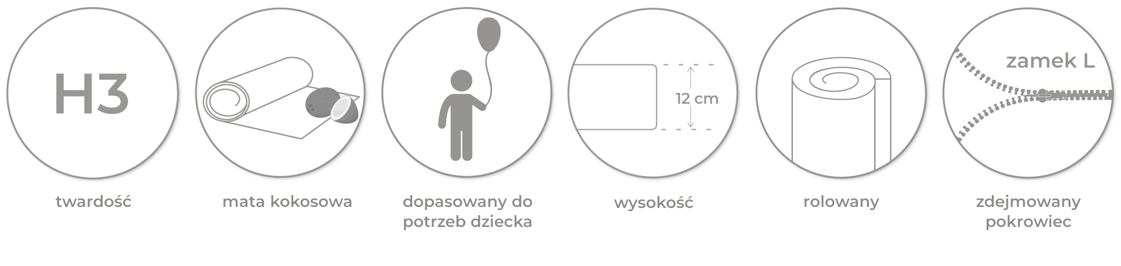 • Wzmocniona konstrukcja – mata kokosowa zwiększa stabilność i żywotność materaca