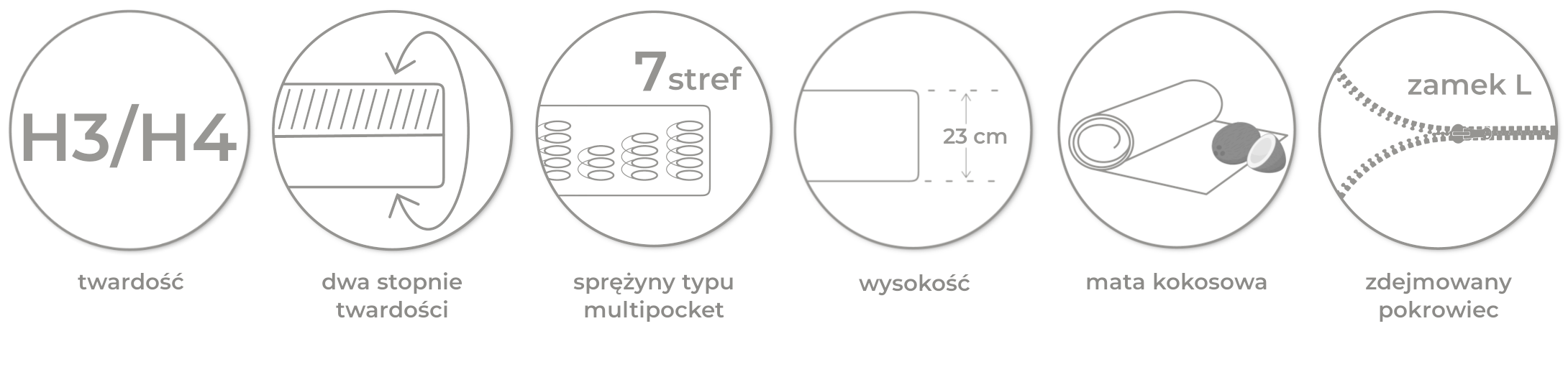 - Zdrowe podparcie kręgosłupa – 7-strefowe sprężyny kieszeniowe dopasowują się do poszczególnych partii ciała