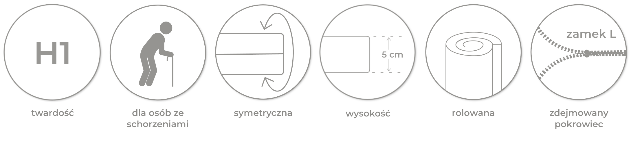 • Wysoki komfort snu – elastyczna pianka idealnie dopasowuje się do kształtu ciała, zapewniając wygodne i stabilne podparcie