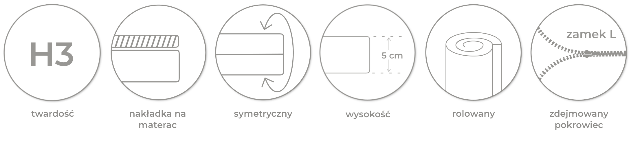 - poprawia komfort snu, delikatnie wyrównując powierzchnię materaca