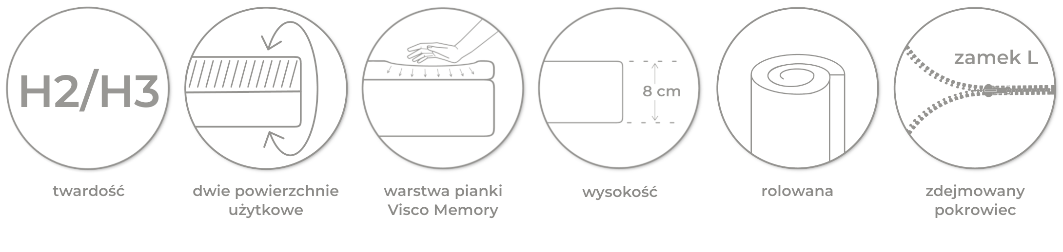 • dopasowuje się do kształtu ciała dzięki piance Visco (efekt „pamięci”)